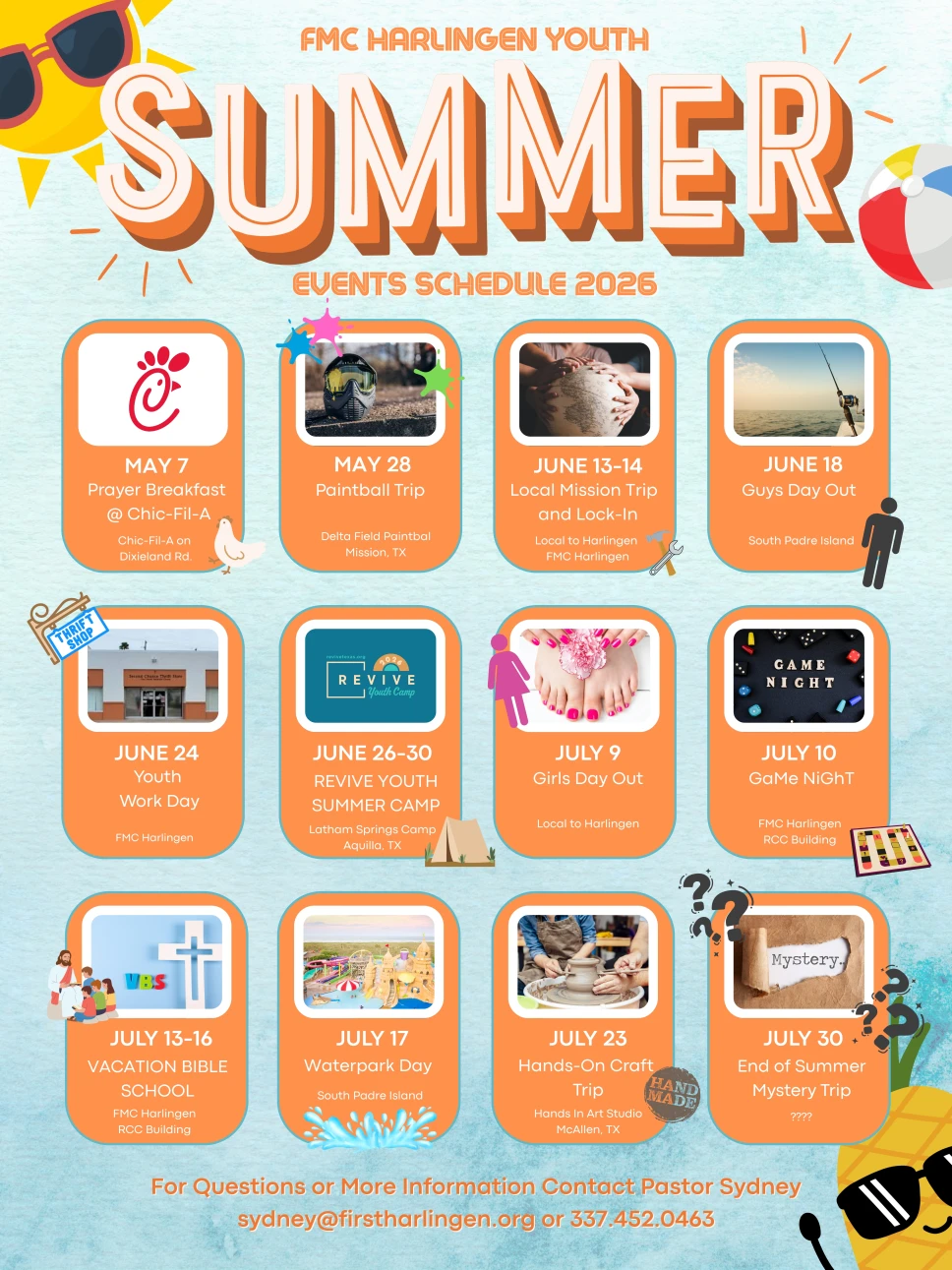 FMC Youth Ministry is for students in grades 6-12. We have both weekly programs and one-time events and retreats. We believe that youth are not just the future of the church but are the church here and now. Everything we do is meant to point us to love God, love one another, and love ourselves. For more info about the FMC Harlingen Youth program, please reach out to Pastor Sydney at